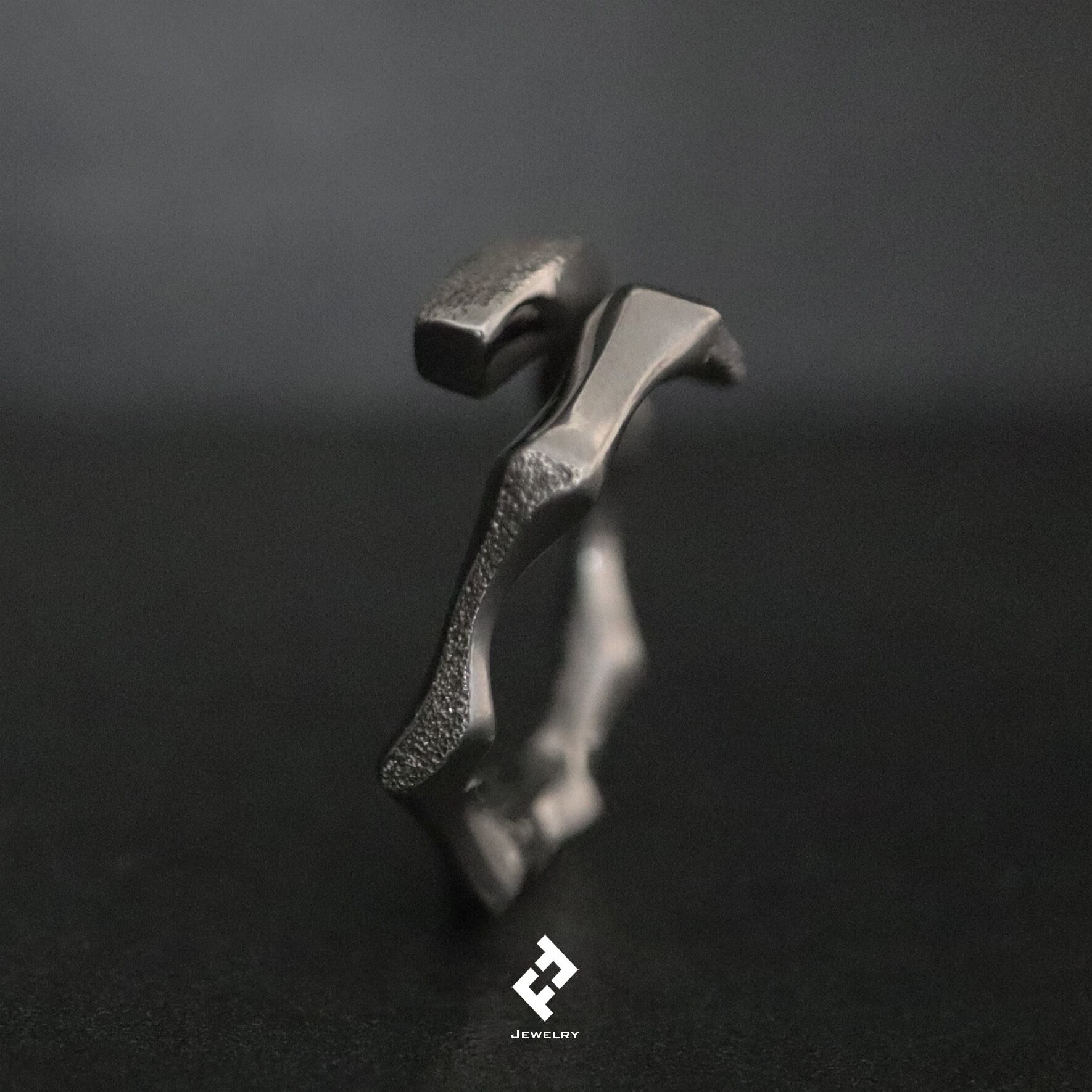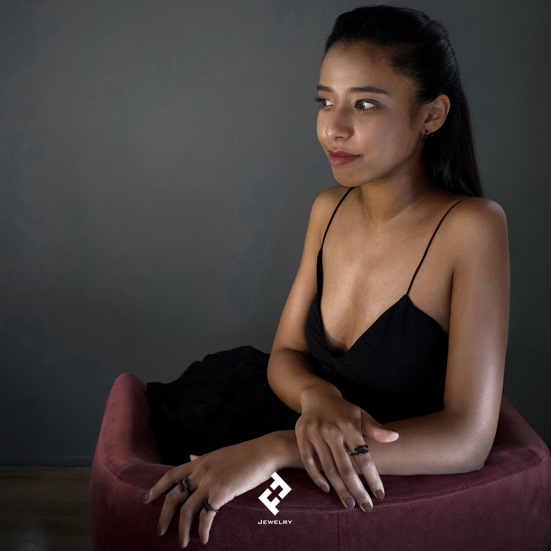 With these precepts I try to give shape and balance to this collection of jewelry (rings, bracelets, necklace and earrings). Simplicity in cuts and its small volume make this ring a perfect accessory to show luxury in a minimalist and sophisticated way. Also the areas with hailstorm effect cause a twinkle in contrast to other areas of the ring mullet.